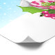 A poster with a cute and whimisical design featuring an adorable penguin wearing a red santa hat. Standing behind a bouquet of flowers with pink and white striped candy canes. A snowy winter background with snowflakes falling.