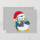 Cute Christmas Penguin Postcard – Holiday Announcement Card with Santa Hat & Gift
