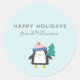 Cute Christmas Penguin Teal Mint Personalised Classic Round Sticker