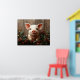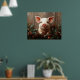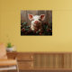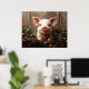 Poster featuring a digital oil painting of a cute pig surrounded by pine cones and pine tree garland with Christmas lights. The wood background adds a rustic vibe to the artwork.
