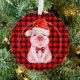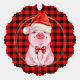 Cute Christmas Pig With Buffalo Plaid Red Funny Tree Decoration Card
