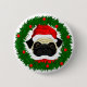 Cute Christmas Pug Santa in Wreath 6 Cm Round Badge