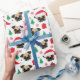 Christmas pug dog breed wrapping paper with trees, presents, snowflakes, Santa hats and pugs!