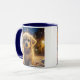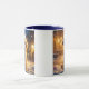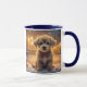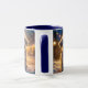 Cute puppy dogs outside on as it snows illuminated snowflakes Christmas coffee mugs.