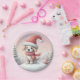 Cute Christmas puppy in santa hat Paper Plate