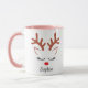 Cute pink and white girly reindeer face with antlers monogram coffee mug. This would be a perfect gift for yourself or for her, a special someone who loves reindeer for the holiday season. Easily personalise it by adding a name.