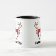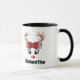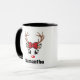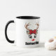 Cute Christmas mug features an image of a red nosed reindeer face. Personalise this festive mug with a name or other custom text. Great festive holiday gift for family and friends.