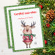 Ho ho ho! Get ready for some Christmas cheer with this adorable Rudolph card! I'm grinning ear to ear, hoping to warm your heart this holiday season! And guess what? There's a festive Christmas border and a silly, fun message from me, Rudolph, on the back! Let's spread some smiles and holiday joy together! I hope you love how the artist made me extra cuddly and inviting by highlighting all my best features. All the little details make this Christmas card design simply delightful!