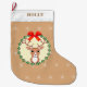 Cute Christmas Reindeer on Beige Large Christmas Stocking