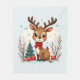 Cute Christmas Reindeer Scene Snowy Forest Fleece Blanket