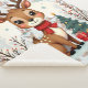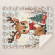 Cute Christmas Reindeer Scene Snowy Forest Sherpa Blanket