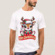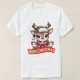 This festive T-shirt features an irresistibly cute reindeer illustration, perfect for spreading holiday cheer. The reindeer, with large expressive eyes and a joyful smile, is adorned with a Santa hat and a green scarf. Surrounding the reindeer are two candy canes crossed at the bottom, tied together with a red ribbon and decorated with holly and ornaments. The vibrant colours and charming design make this T-shirt an ideal choice for celebrating the Christmas season in style.