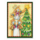 Funny and silly vintage illustration Merry Christmas holiday cartoon design featuring two humourous reindeer. The best friends are decorating a Christmas tree and adding a bright gold star to the top. A fun design for animal lovers.