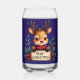 Cute Christmas Reindeer with Holly and Sign Can Glass