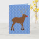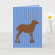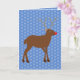 This awesome card features a graphic design image of a cute Christmas Reindeer with a bright shiny red nose. The Reindeer is brown and furry, she has large antlers and dark brown hooves. Her eye is black and she has a big smile on her face.