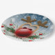 Cute Christmas Reindeer Xmas Holiday Snowflakes Paper Plate