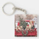 Cute Christmas Retro Red Truck With Puppies Dogs Keychain.