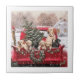 Cute Christmas Retro Red Truck With Puppies Dogs Tile