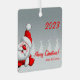 Christmas Santa metal square ornament, perfect for adding a festive touch to your holiday decorations. This ornament features a charming scene with a delicate snowflake and a classic Christmas tree, all set against a subtle grey background. The square shape adds a modern twist to the traditional Christmas ornament, while the metal construction ensures durability for years to come. The image of Santa Claus is prominently featured, adding to the yuletide cheer of this delightful ornament.