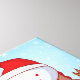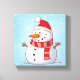 A cute Christmas snowman who is kind of chubby and jolly wearing a striped scarf and a red christmas hat. Festive and fun.