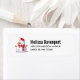 A cute Christmas snowman who is kind of chubby and jolly wearing a striped scarf and a red christmas hat. Festive and fun.