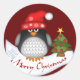 This cute Christmas sticker with the little penguin and Christmas tree can be customised by changing the background colour. The text is part of the design.