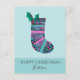 Cute Christmas Stocking Geometric Pattern Custom Holiday Postcard