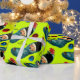 Colourful ,whimsical and funny vintage elaboration with Xmas sock with red poinsettia flower and 3D red ruby,teal blue sapphire gem stones.