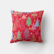 This cute holiday throw pillow will add cheer to your holiday home décor. It features a whimsical pattern of Christmas trees in green, pink and blue on a red background. Illustrated by world renowned artist Tim Coffey.