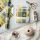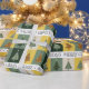 Christmas trees in shades of green, sage, yellow, and beige are featured in this beautiful pattern.