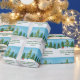 This beautiful personalised Christmas wrapping paper features pretty green fir trees capped with snow on a lovely white snow winter landscape and blue sky. Customise who your gifts are from with your family last name.