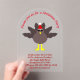 This awesome acrylic Christmas Party invitation features a funny cartoon of a Christmas turkey with big black eyes, a small yellow beak and tail feathers sticking up. The feet are facing in opposite directions making the turkey look clumsy. The turkey is wearing a red and white Santa hat and is ready for Christmas. There is custom text so you can personalise this design with all the party details.