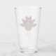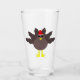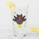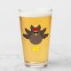 This awesome glass features a funny cartoon of a Christmas turkey with big black eyes, a small yellow beak and tail feathers sticking up. The feet are facing in opposite directions making the turkey look clumsy. The turkey is wearing a red and white Santa hat and is ready for Christmas.