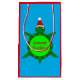 This awesome gift bag features a cute Christmas Sea Turtle with a green shell and 4 legs. The turtle is wearing a festive red and white hat. It has cute black and white eyes and a tiny green tail. The outer section of the shell is decorated with alternating holly leaves and berries and pretty red poinsettia flowers.