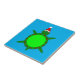 This awesome tile features a cute Christmas Sea Turtle with a green shell and 4 legs. The turtle is wearing a festive red and white hat. It has cute black and white eyes and a tiny green tail. The outer section of the shell is decorated with alternating holly leaves and berries and pretty red poinsettia flowers.