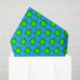 This awesome tissue paper features a cute Christmas Sea Turtle with a green shell and 4 legs. The turtle is wearing a festive red and white hat. It has cute black and white eyes and a tiny green tail. The outer section of the shell is decorated with alternating holly leaves and berries and pretty red poinsettia flowers.