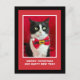 This adorable postcard features a tuxedo cat wearing a red bow tie for the Christmas holidays. The kitty has a red background behind her. The words, "Meowy Christmas and Happy Mew Year" appear below the kitty. On the reverse side you can customize your address and your names. A big paw has the word, "To:" inside it to add an extra cute touch for the holidays. Copyright Peaches the Tuxedo Cat
