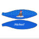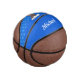 This awesome basketball features a graphic image of a cute little Christmas Walrus. The Walrus has brown fur with big black eyes and white tusks. It is sitting on an iceberg in the middle of the ocean and wearing a red and white festive hat. The walrus is surrounded by pretty octagonal blue snowflakes falling down all around it.