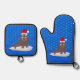 Cute Christmas Walrus and Snowflakes Oven Mitt & Pot Holder Set