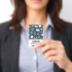 I use this mainly to show customers who I am as I go out to properties rather than they come to a shop. It’s bright enough for them to see and makes me stand out from anyone else walking by. QR code works perfectly and all writing is readable