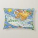 The cushion is small to medium sized. It can be washed. It is well constructed. The material used is pleasant and feels decent quality. It has a very slight plush feel which is good. It is well labelled and its care clearly stated. Theres nothing not to like about it. All in all a good item. The deduction of one star overall is due to long delays in delivery to the UK. It's not clear if this was due to Zazzle or somewhere else in the chain as I did not receive status updates of dispatch or progress. I cannot comment anymore on that other than to say that was our experience but it may not be the same for you. The printing was surprisingly close to what we were expecting. Its an art piece and on material so its hard to assess the precision of printing but it seems close to the original. The soft lines are reproductions of the original. The colour is a fair reflection of the painting. This was printed in the US and it looks like US quality. No issues.