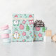 Adorable Christmas wrapping paper featuring playful snowmen, candy canes, stars, trees, and ornaments on a soft pastel background. Perfect for adding a fun and cheerful touch to your holiday gifts.