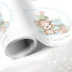 Cute personalised Christmas Wrapping Paper in soft blue, beige and green, with the cutest baby bear and Christmas gifts. Easily personalise the text. - Kate Eden Art
