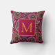 Cute and girly, classic red, navy blue, and yellow paisley pattern decorator pillow customised with your monogram/initial.