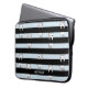 Quirky cute white cats climbing on black stripes personalised laptop sleeve. You can change the colour of the light blue stripes.