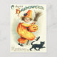 Cute Clown Black Cat Jack O Lantern Postcard