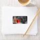 Cute, cocker spaniel with party hat and Christmas decor in front of a red gift box, staring at the snowfall in the light, unique, custom winter theme address label with a tranquil, serene, festive feeling.
