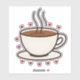 A charming doodle-style sticker featuring a steaming coffee cup surrounded by hearts. Perfect for coffee lovers, this sticker adds a cute and cozy touch to laptops, mugs, or notebooks. Ideal for those who adore both caffeine and cute designs.