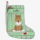 Cute Collie Dog Green Wooden Fence Monogram Small Christmas Stocking