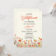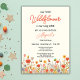 Celebrate your little sunshine with this sweet “Our Little Wildflower” 1st birthday invitation, set on a soft yellow background that feels warm and joyful. A charming border of cute wildflowers in soft orange and yellow blooms along the bottom of the card, accented with buzzing bees and a delicate butterfly. The word “Wildflower” is written in a beautiful script font in a coordinating floral color, while the party details are styled in a mix of elegant script and classic serif fonts for a balanced, whimsical look. The design is easy to customize with your own celebration details, and the back of the card features the same floral artwork with a lovely string of butterflies fluttering up from the flowers for a magical finishing touch.